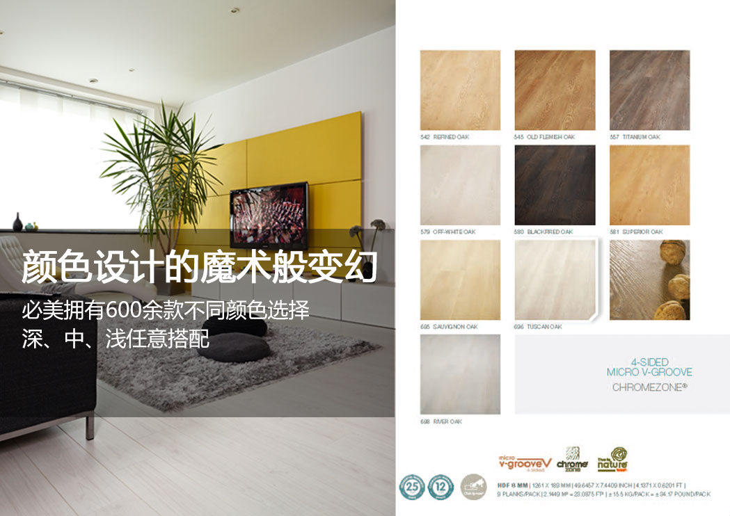 審視、感受、愛上設計 設計遠不止是美觀的外表。設計是外觀、功能、材料、操作和體驗的結合。對此,必美和歐洲廠商一絲不茍。 必美歐洲地板廠商對產品設計是多年的研究工作成果。因此,地板才能在國際市場上取得成功。并在全球受到青睞。