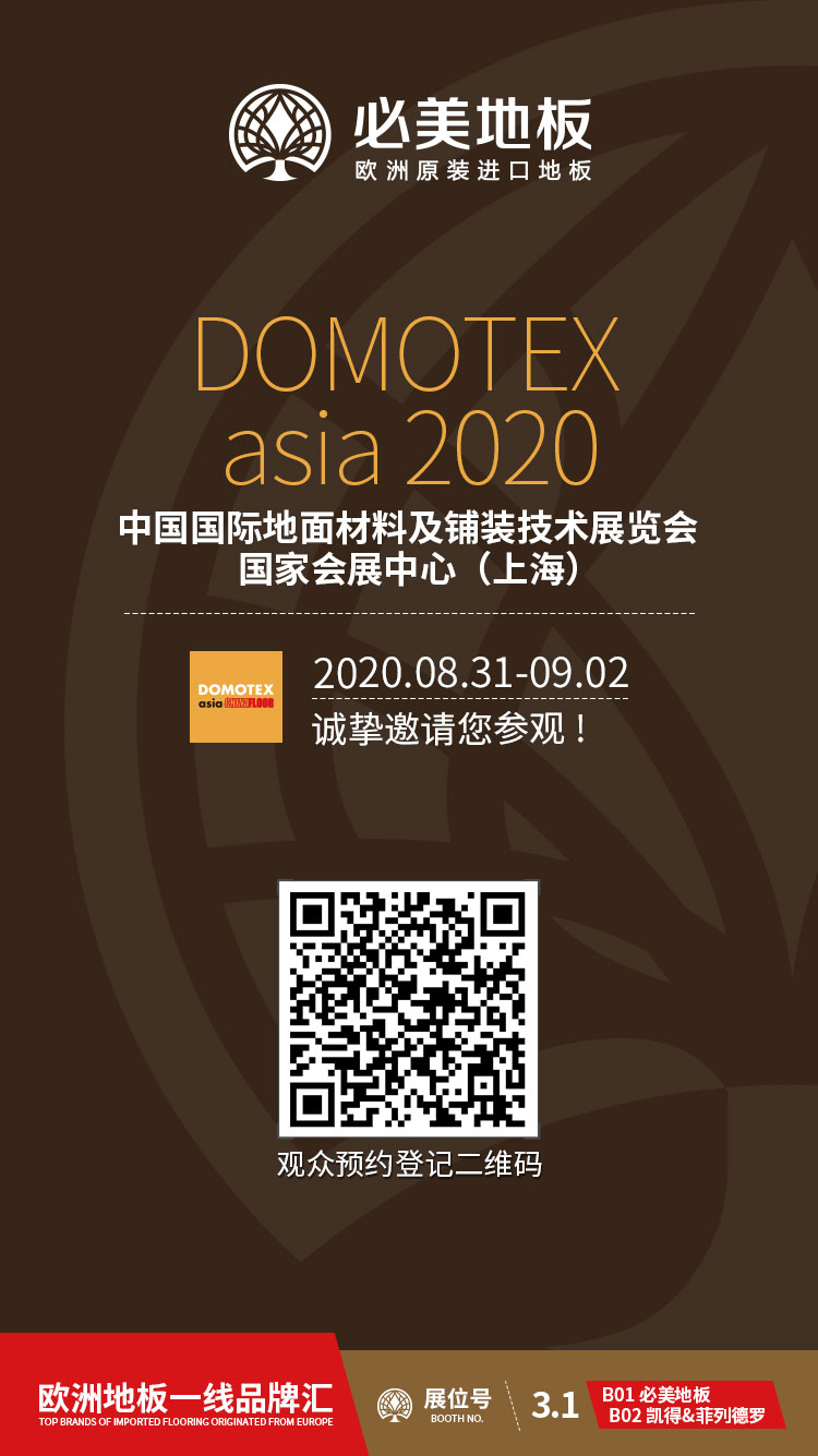 今年展會(8月31日—9月2日,上海.國家會展中心),必美地板將在3.1 B01&3.1 B02展廳為大家奉上最新的家居創意,潮爆眼球的地板新品,實力演繹歐洲高端品質生活方式。