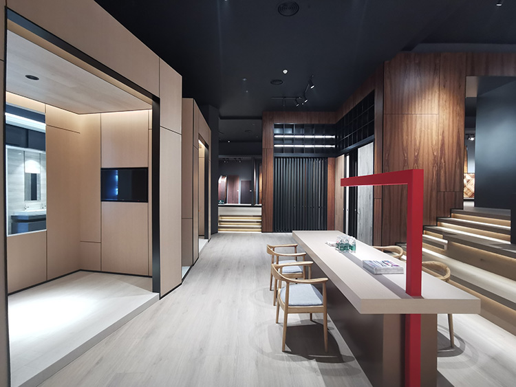 邵唯晏設計團隊在設計過程當中不斷弱化必美臻品館的物質銷售屬性,通過空間去塑造感官體驗與心理認同,圍繞地板的應用空間進行生活化的情景打造,構建起一個生活美學體驗館。