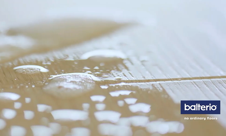 同時采用Uniclic+FitXpress鎖扣系統,將兩塊地板拼接,把水倒在鎖扣接縫處,挑戰24小時不間斷測試,24小時后發現水分零滲透,完全沒有滲入到地板基材中,真正做到滴水不漏,萬無一濕!這說明寶地雅防水地板可以突破傳統鋪設禁區,配合使用HydroShield水盾系統,可以完美適用于廚房、浴室的干區。