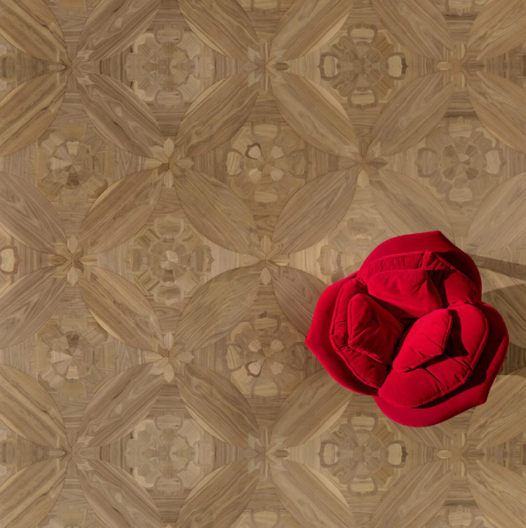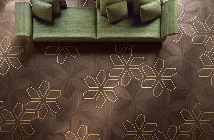 菲列德羅采用家具工藝制作地板,切割、打磨、上色、鑲嵌等全程純手工打造,其中的拼花地板更是由20年以上的威尼斯工匠制作,每種拼花由64個以上的模塊組成,年產量僅為5萬㎡,采用一對一個性化定制,是身份和地位的象征。