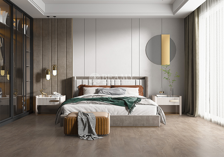 必美地板智慧門店系統(tǒng)設(shè)置了輕奢風(fēng)、現(xiàn)代簡(jiǎn)約風(fēng)、新中式等時(shí)下最流行的6大家居風(fēng)格,滿足消費(fèi)者的個(gè)性化家裝需求。每種風(fēng)格匹配客廳、臥室、廚房等6大家居功能區(qū),全方位覆蓋生活空間。點(diǎn)擊產(chǎn)品中心,可以自由替換每個(gè)功能區(qū)的地板產(chǎn)品,一鍵查看產(chǎn)品詳情和鋪裝效果,同時(shí)可以快速更換風(fēng)格場(chǎng)景,選擇橫鋪豎鋪等鋪裝方式,360°全景復(fù)刻,自由調(diào)節(jié)查看的角度和細(xì)節(jié),到你暢游未來(lái)之家,為完美家裝帶來(lái)無(wú)限的想象空間。
