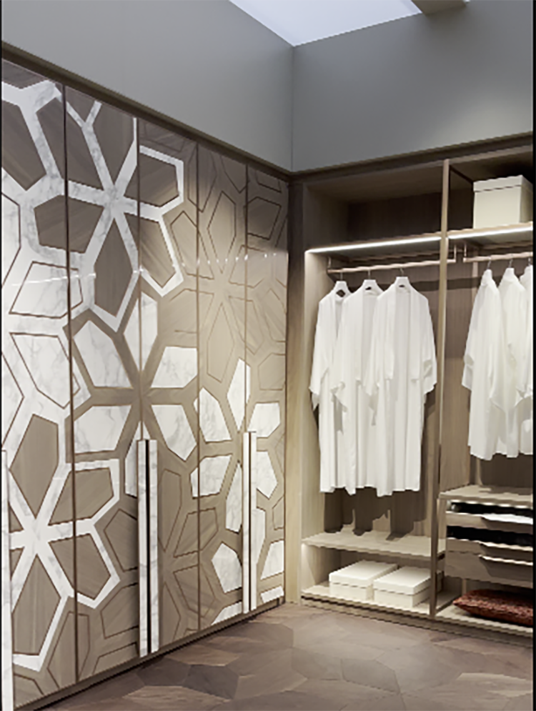 Life步入式衣櫥增強了實木的美感,配合金屬材質塑造現代外觀。以定制化解決方案,組合抽屜單元、開放或封閉的架子、中島柜,適應每個空間和功能要求。LIFE系列引人注目的飾面,詮釋了優雅、現代的風格趨勢,并印證了必美阿特布魯托步入式衣櫥的非凡定制能力。