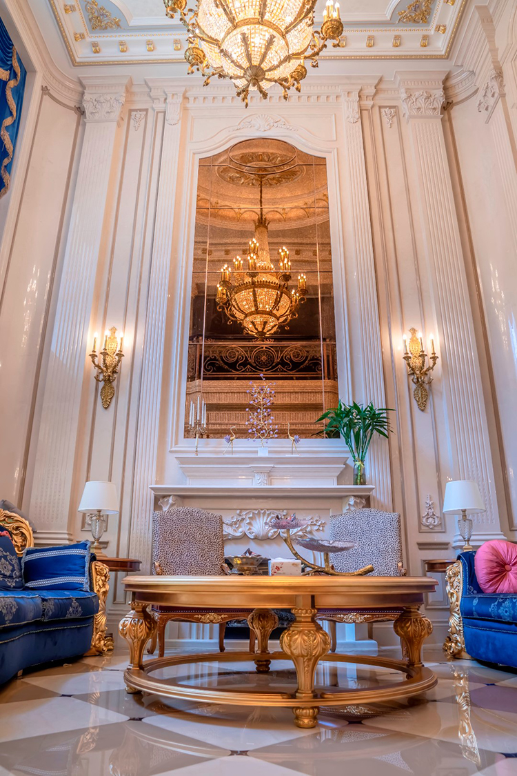 這座如宮殿般奢華的別墅位于蘇州張家港,耗資約5千萬,由當地知名設計師范鵬飛設計完成。高聳的挑空客廳、精致的歐式雕花墻飾、大氣的大理石墻面、奢華的懸掛吊燈,豪華程度簡直令人嘆為觀止。