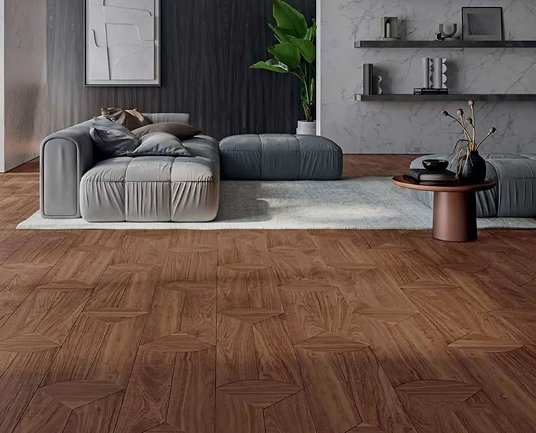Ritma(瑞瑪)設計靈感源于兩個具有節奏的模塊元素組合而成,以優雅的韻律譜出有序的圖案形狀,充滿活力的動態表層,讓人聯想到經過精細雕刻的淺浮雕效果,既能突出木材歷久彌新的材料本質,又為地面帶來無盡的獨特魅力。