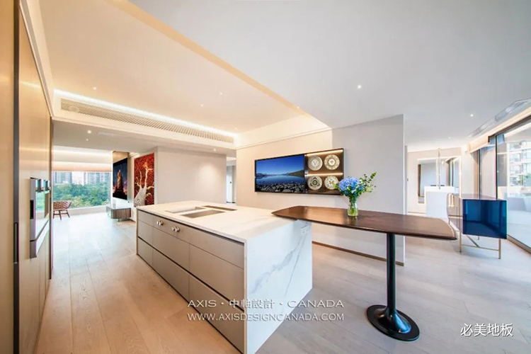 全屋鋪設(shè)了產(chǎn)自意大利的必美菲列多納達(dá)爾橡木地板,名貴木種的紋理獨(dú)特細(xì)膩,每一片都由資深的威尼斯工匠純手工制作,在燈光系統(tǒng)的智能調(diào)節(jié)下,質(zhì)感更上一層樓。
