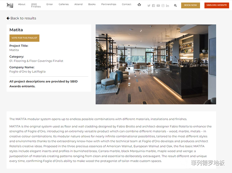 菲列德羅憑借其最有趣、最現代的創作而備受矚目。Matita地板因以下贊譽而被收錄到地板和地板覆蓋物類別的入圍名單中。