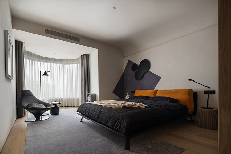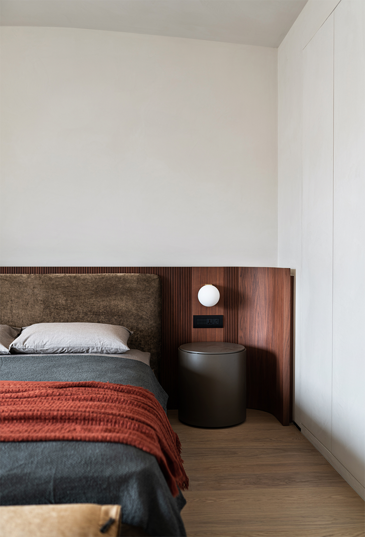 臥室空間以簡潔、雅致為基調, 營造溫暖親近,愜意舒適的空間,給人一種靜謐的安心,舒緩疲憊整日的身心。