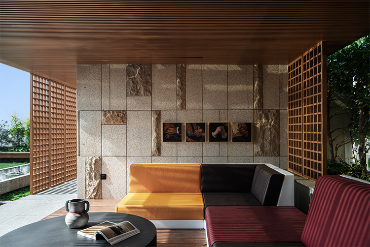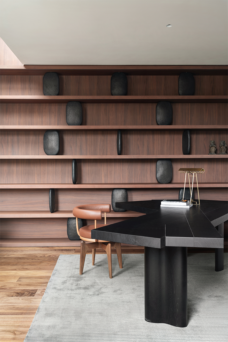 水泥墻體的原始質感,與木質書架塑造了不同材質之間碰撞,形成了特有的空間質感和表情。