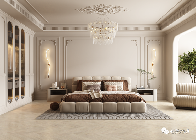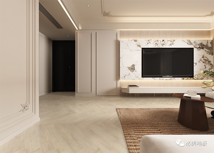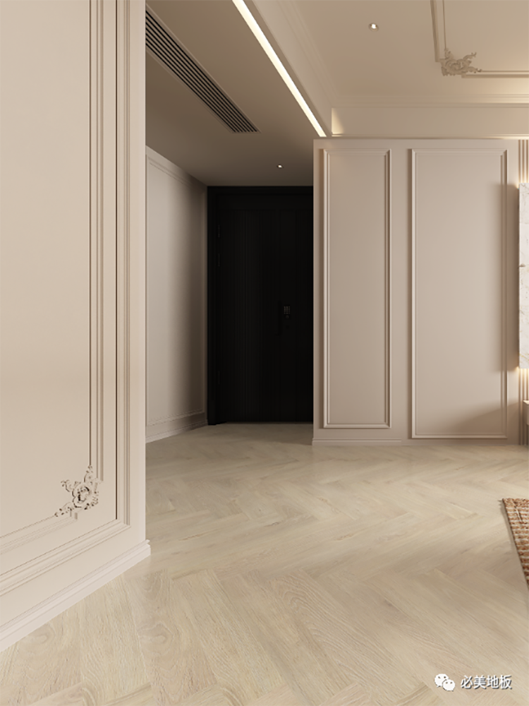 天然橡木人字拼搭配同色系墻漆