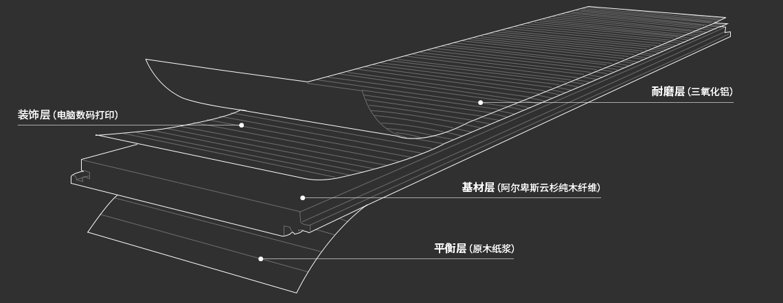 水晶耐磨層工藝,鋼化技術(shù)處理的高密度基材板,抗污、防撞、防靜電、不易變形