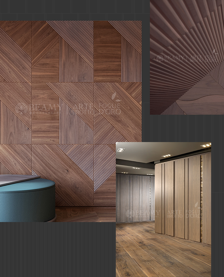 Foglie dOro designs and produces a wide range of Walnut and Oak wood flooringincluding planks, herringbone, and modular patternsborn from the creativity of its in-house technical team or in collaboration with renowned architects and designers. Additionally, it offers its expertise to create bespoke flooring, working closely with designers to fulfill every detail of the clients vision.