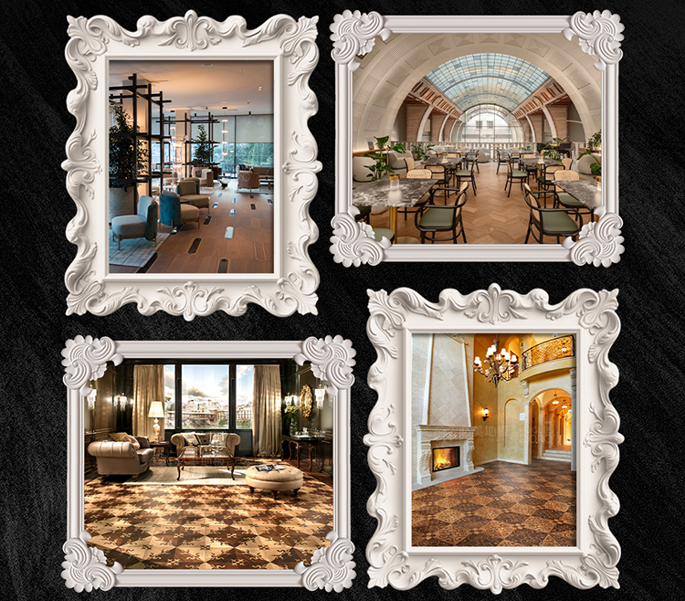 拒絕工業化量產式流水線的冰冷,堅持由威尼斯工匠純手工制作:從選材的紋理匹配,到嵌花圖案與空間光影的精密計算,甚至根據奢侈品旗艦店品牌logo或客戶家族徽章定制專屬拼花。