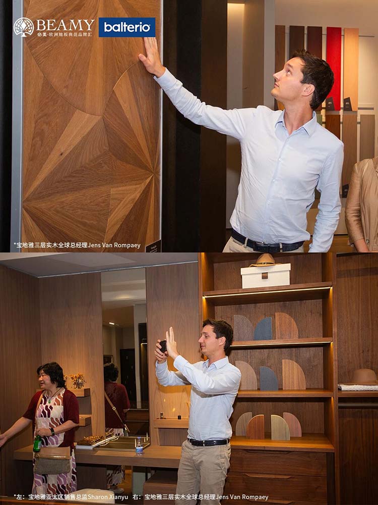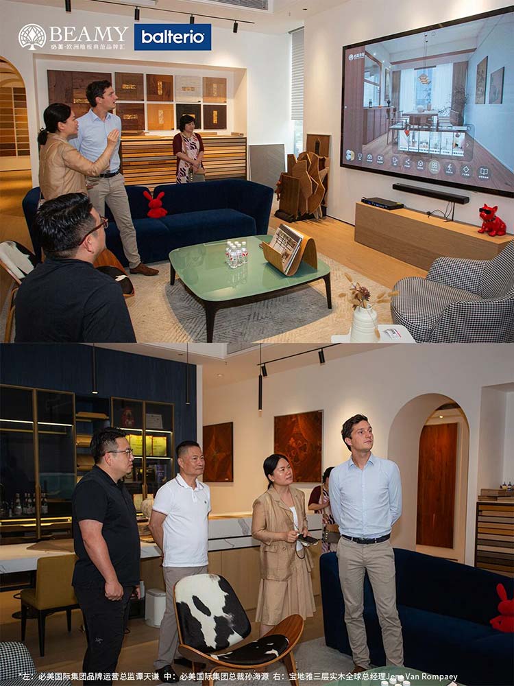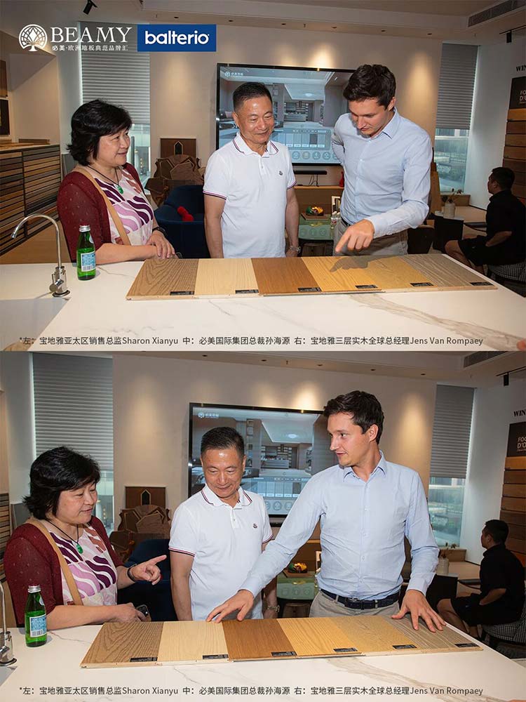 熱烈歡迎比利時(shí)寶地雅一行蒞臨必美集團(tuán),三層實(shí)木煥新系列全球首發(fā),共繪健康家居地板新藍(lán)圖!10月10日,寶地雅三層實(shí)木全球總經(jīng)理Jens Van Rompaey先生與寶地雅亞太區(qū)銷售總監(jiān)Sharon Xianyu女士在必美國(guó)際集團(tuán)總裁孫海源先生、必美國(guó)際集團(tuán)品牌運(yùn)營(yíng)總監(jiān)譚天謙先生的陪同下,共同走進(jìn)必美地板羅浮宮店,開(kāi)啟一場(chǎng)關(guān)于健康、藝術(shù)與可持續(xù)的深度對(duì)話。