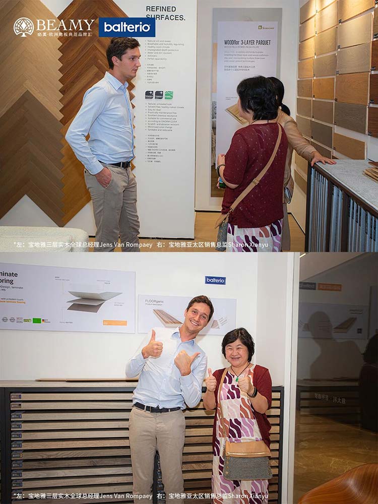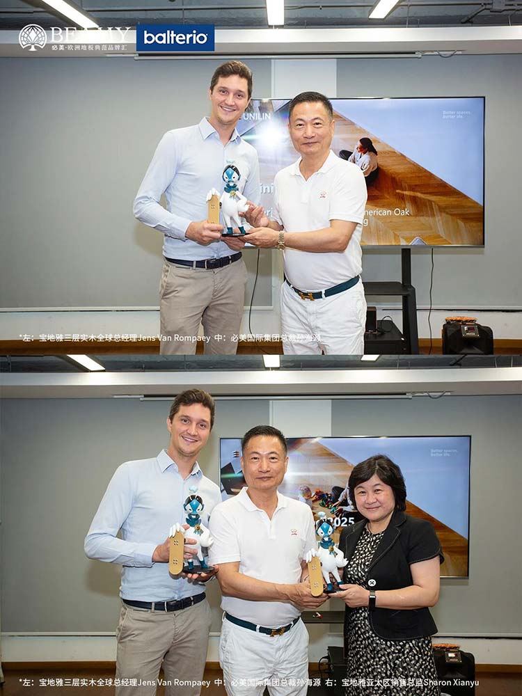Jens Van Rompaey先生在發(fā)言中表示:“通過(guò)此次訪問(wèn),我們欣喜地看到,必美不僅僅是在銷售地板產(chǎn)品,更是在不遺余力地向中國(guó)消費(fèi)者傳遞一種源自歐洲的健康家居美學(xué)文化與可持續(xù)的生活態(tài)度。這與寶地雅品牌所秉持的核心理念不謀而合。”他進(jìn)一步強(qiáng)調(diào),對(duì)與必美這樣志同道合的伙伴繼續(xù)攜手前行充滿信心,期待通過(guò)雙方的緊密協(xié)作,將更多源自歐洲的原創(chuàng)、環(huán)保、高品質(zhì)地板帶給追求卓越生活的中國(guó)家庭。