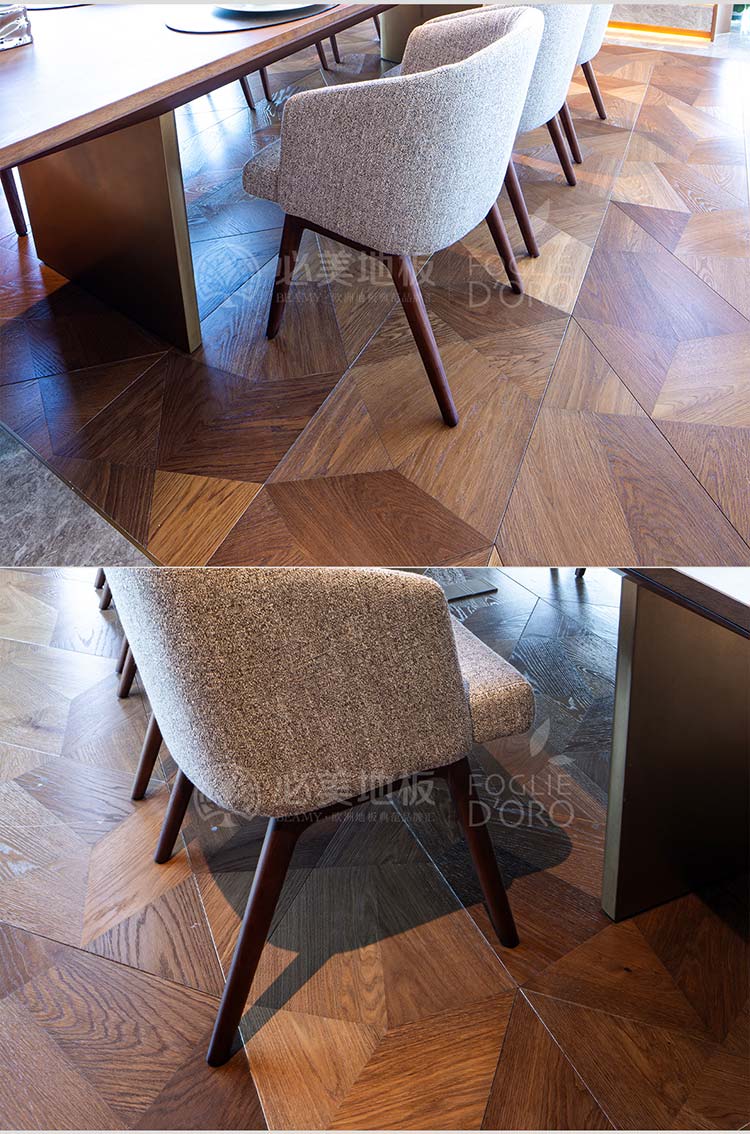 眾可供選擇的飾面,使必美菲列德羅弗拉門蒂拼花能夠被選作適合任何生活風格和室內設計完美選項!木質的天然紋理與拼花的藝術韻律交相輝映,低調中透露出雋永的奢華,特的幾何拼花圖案和溫潤如玉的觸感,為空間注入了一份靈動與雅致,完美詮釋了現代輕奢“于細節處見真章”的哲學!