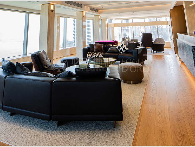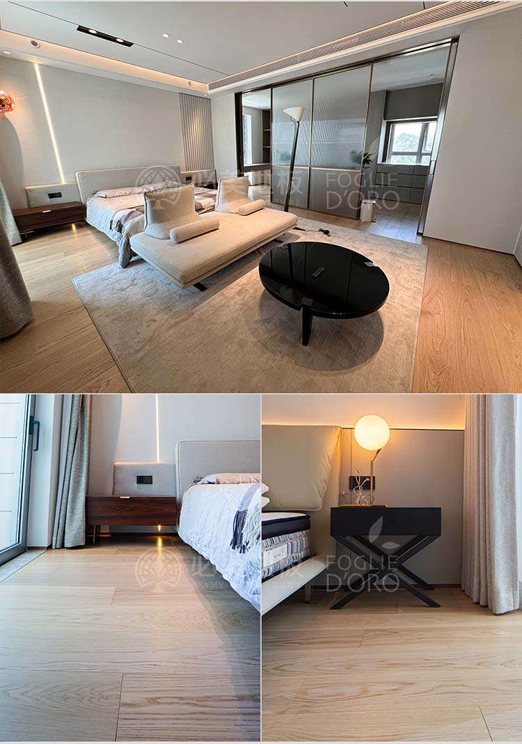 必美菲列德羅巴塞吉奧橡木地板紋理清晰,每一塊都有獨特的紋理和色彩與房間的裝飾風格相得益彰,高貴而沉穩的色調,其紋理更加深邃立體,仿佛承載著歲月的沉淀與自然的力量。赤腳漫步其上,感受木材天然的溫度與彈性,遠眺壯闊海景,這種自然之美是無可復制的,越簡潔越高級,給人一種回歸自然的感覺。