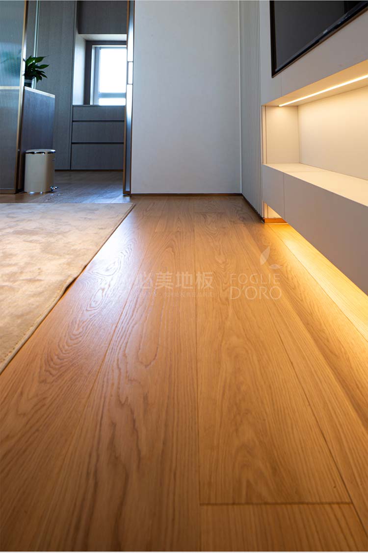 這款地板以其筆直流暢的線條和均勻細膩的紋理,帶來視覺上的延伸感與寧靜感。木色與公共區域形成了巧妙的呼應,卻在細節處展現出不同的個性,既保證了整體風格的協調統一,又賦予了每個空間獨有的靈魂。當清晨的第一縷陽光穿透窗簾,溫潤的木地板在腳下蘇醒,為新的一天帶來自然與溫暖的問候。