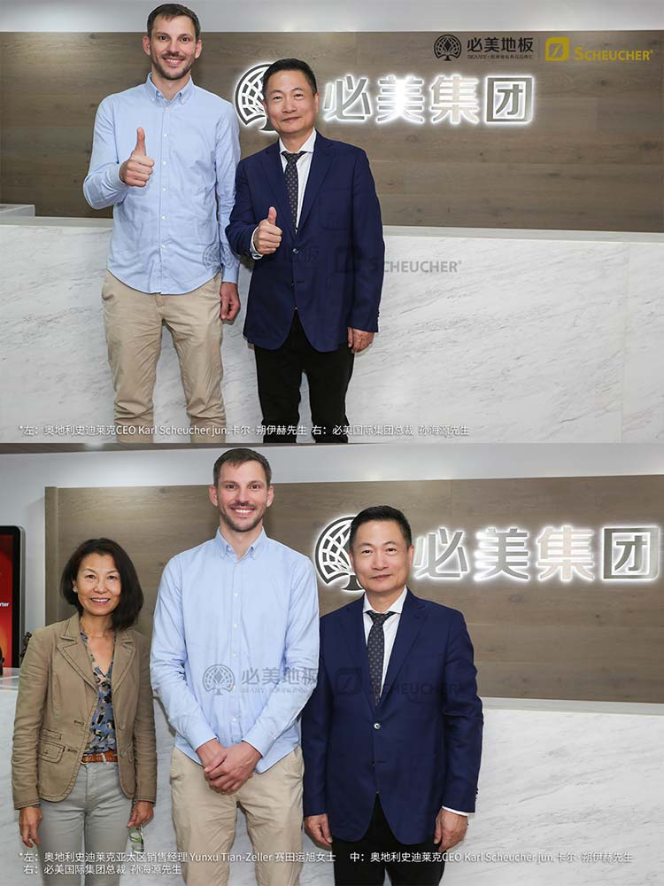 在必美國(guó)際集團(tuán)總裁孫海源先生、必美國(guó)際集團(tuán)品牌運(yùn)營(yíng)總監(jiān)譚天謙先生的陪同下,雙方就未來(lái)中國(guó)地板市場(chǎng)的發(fā)展趨勢(shì)、消費(fèi)升級(jí)帶來(lái)的新需求以及如何進(jìn)一步深化合作進(jìn)行了卓有成效的探討。