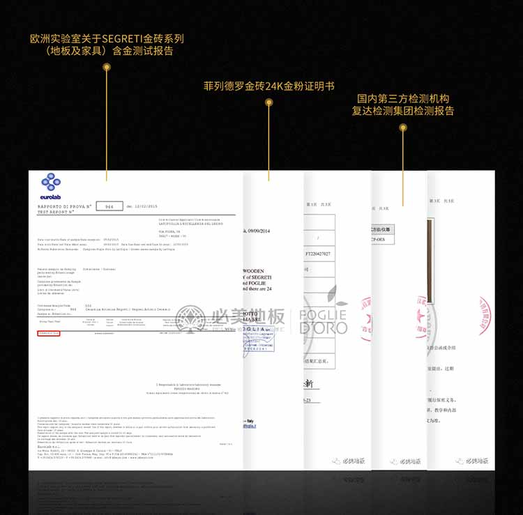 金磚系列還具有雙重“黃金身份證”,經過歐洲權威eurolab(歐洲實驗室)和國內第三方檢測機構復達檢測集團的成分檢測,測試結果均表明必美菲列德羅金磚系列確實內含24k金!