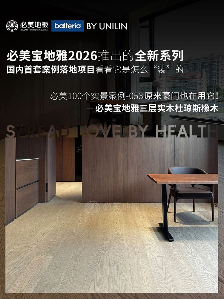 我們都知道,三層實木地板的防水性一直是行業(yè)痛點。必美寶地雅憑借全球唯一的24小時防水三層實木技術,將天然實木的溫潤與極致防水性能完美融合;